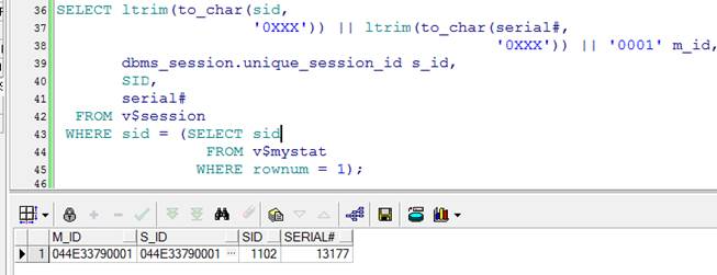 SELECT DBMS_SESSION.UNIQUE_SESSION_ID FROM DUAL