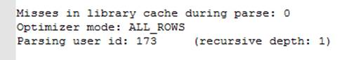 第一行表示发生在解析的硬解析数量,如果是软解析则Misses in library cache during parse将为0;