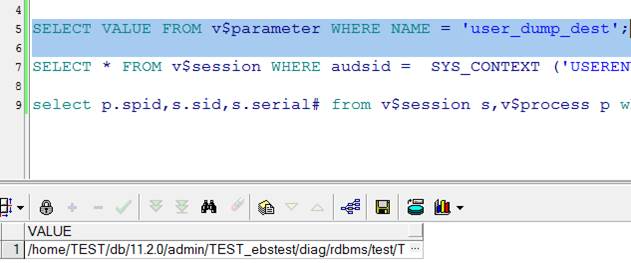SELECT * FROM v$parameter t WHERE t.NAME = 'user_dump_dest';
