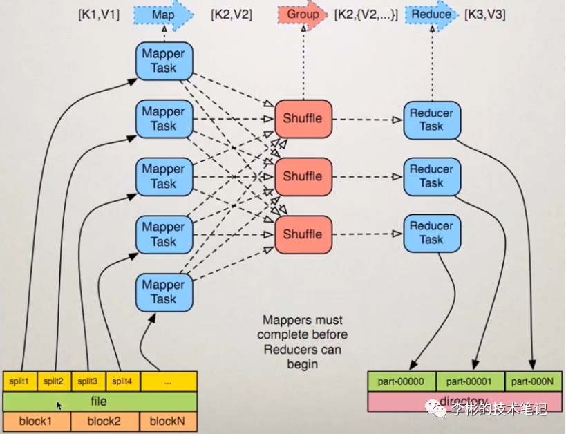 输出的每一条数据都会有一个指定的key,具有相同key值的数据会被发送到同一个Reduce WorkShuffle:在进入 Reduce 阶段之前,MapReduce 框架会对数据按照 Key 值排序,使得具有相同 Key 的数据彼此相邻,这会有助于降低从Mapper到 Reducer数据传输量 Reduce:相同Key的数据会传送至同一个Reduce Worker,每个Reduce Worker会对Key相同的多个数据进行Reduce操作