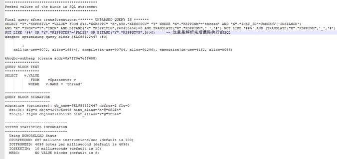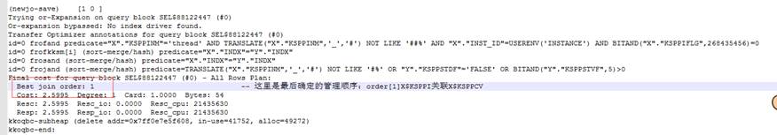 对查询语句开启10053跟踪,满足硬解析和CBO优化器模式条件:
