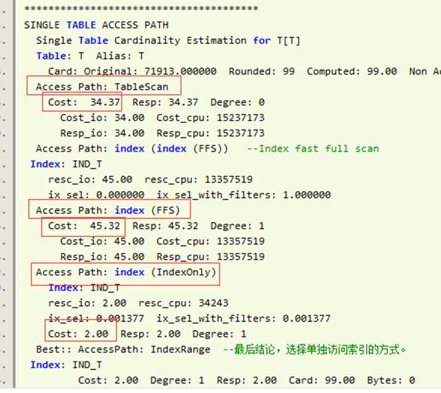 通过这一部分信息我们可以看到对表,CBO认为可以通过下面的方式访问数据: