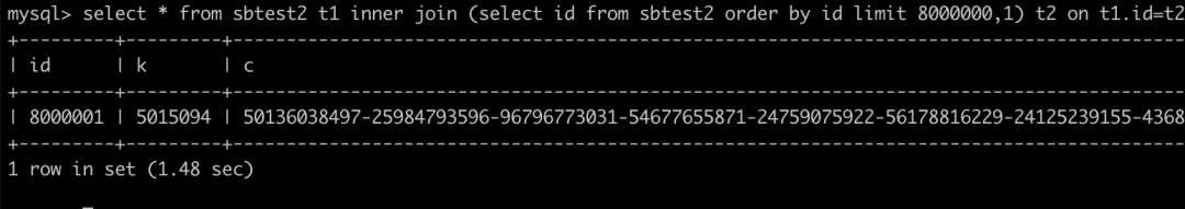 针对这个问题,其实有一个比较通用的优化思路:利用 join,先根据主键搜索到需要的数据,再通过主键关联到原来的表输出结果。SQL 可以改写一下: