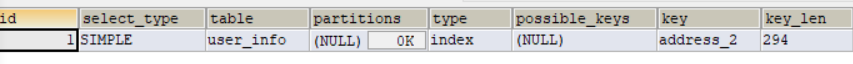 explain select name,age,address from user_info where name like '%a%';