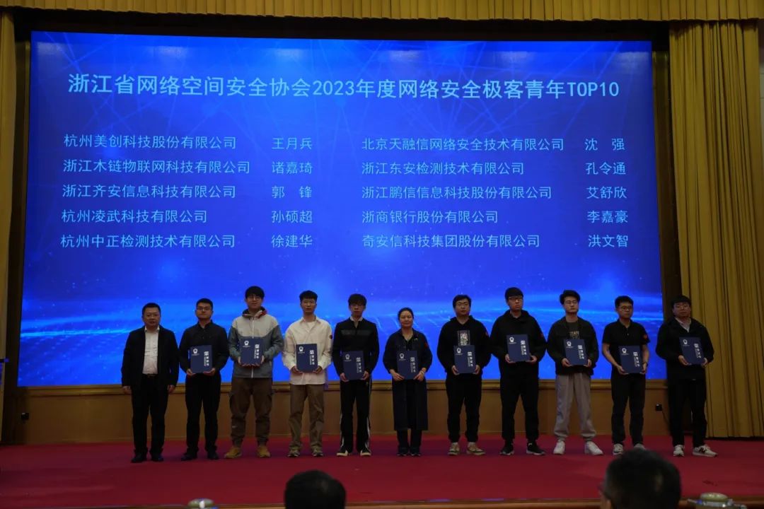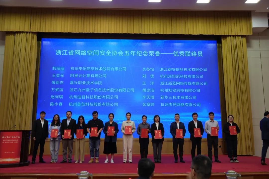 美创科技荣获“五年纪念荣誉—杰出会员”、“2023年度网络安全服务保障贡献奖”,美创第59号实验室负责人王月兵入选“2023年度网络安全极客青年TOP10”,美创市场总监陈小赛获“五年纪念荣誉—优秀联络员”。