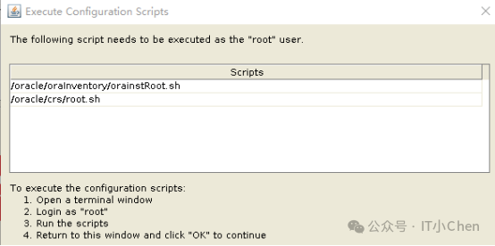 执行脚本,其中执行第二个脚本root.sh时间较长,需要几分钟