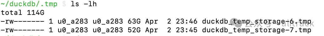 这两个都是在notebook下运行duckdb,因为没有正常关闭连接,导致临时文件没有被及时清除。总的来说,DuckDB的确很强大,即使4GB内存,也可以通过测试,就是太慢了。
