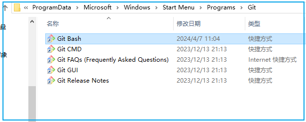 以 Git-Bash 为例,打开 Git-Bash 的快捷方式所在的目录: