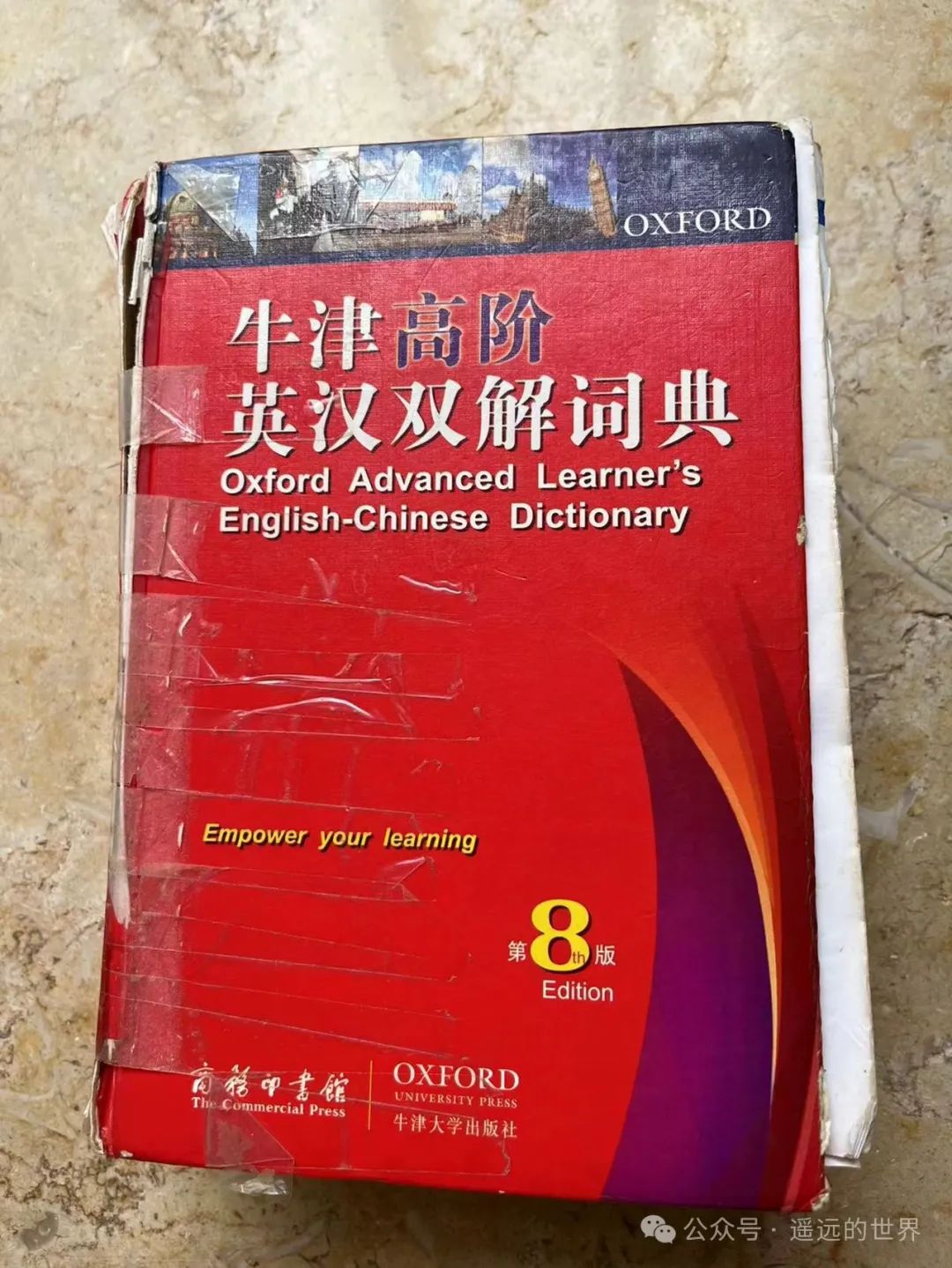 我学英语的绝招就是背词典,大家看这本牛津双解《英汉大词典》已经被我背烂了,经过4年的艰苦学习,我终于把这本词典背下来了,英语也完全过关了。