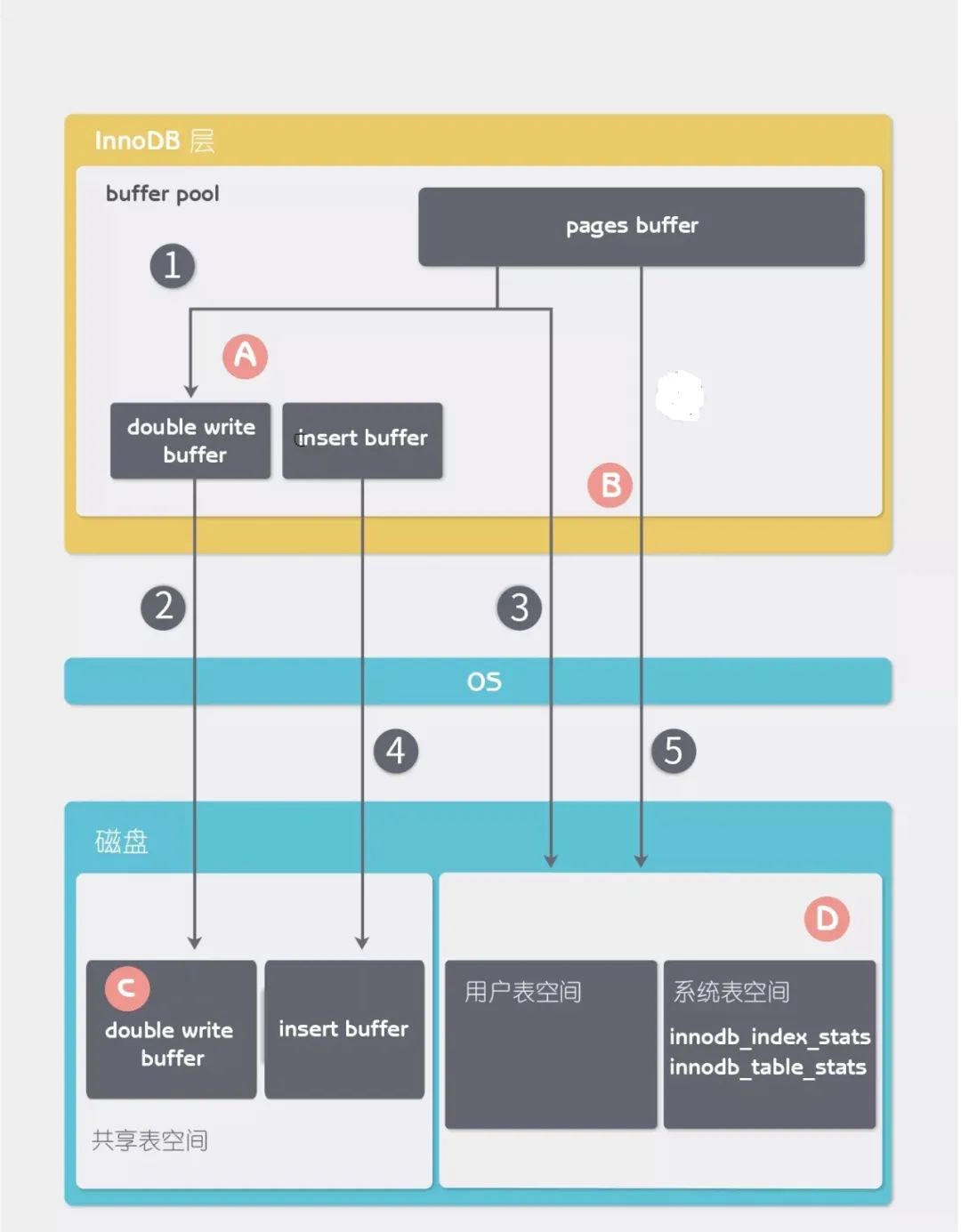 2、当开启共享表空间时,刷新数据时首先会复制一份刷入共享表空间中,由于共享表空间的页是连续的,对磁盘的写入也是顺序操作,所以这个过程对性能消耗不大。
