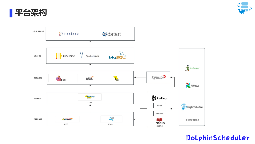 在调度平台方面,我们采用了Apache DolphinScheduler和Airflow,其中Airflow是较早的大数据开源调度平台之一。