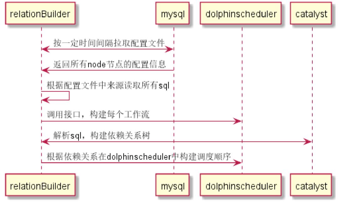 我们的改造方案核心思路是利用Apache DolphinScheduler提供的API,通过一个外部Java程序,自动读取MySQL中存储的配置信息,进而自动创建工作流所需的所有依赖流。主要步骤包括: