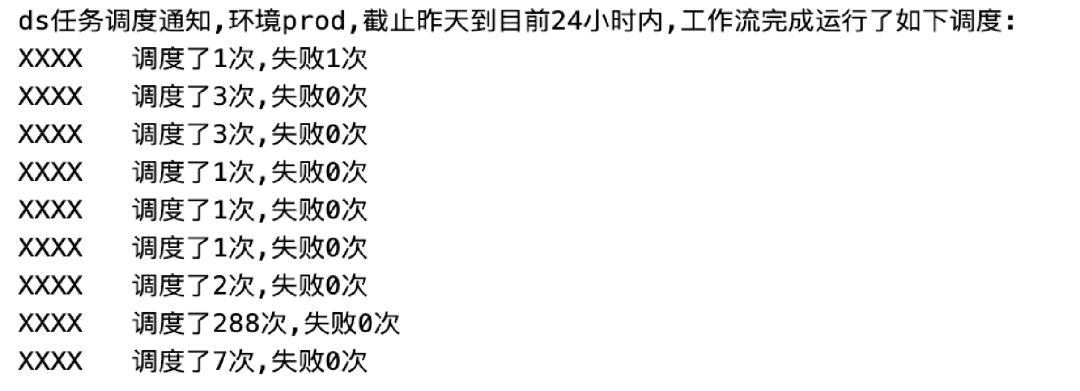 通过利用Apache DolphinScheduler的元数据信息,我们实现了一个自动推送功能,每天定时将生产调度报告发送到指定的钉钉群中。这个报告包括了所有任务的运行情况,如哪些任务成功,哪些任务失败,极大地方便了运维团队及时掌握任务的执行情况。