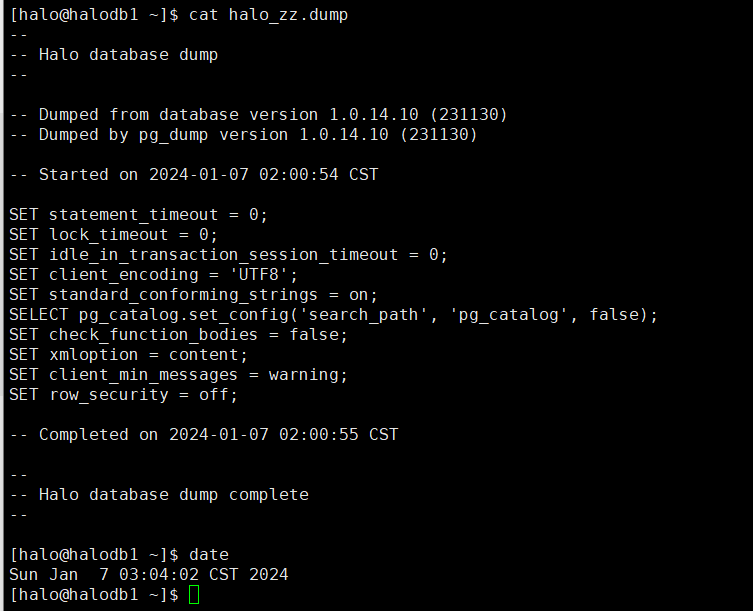 [halo@halodb1 ~]$ pg_dump -v -d halozz > halo_zz.dump