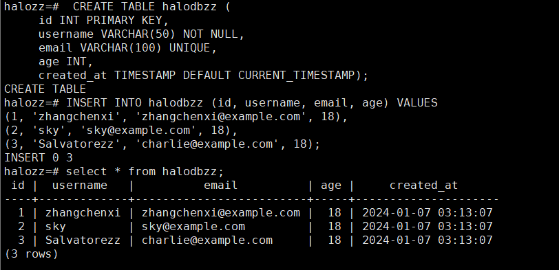 INSERT INTO halodbzz (id, username, email, age) VALUES