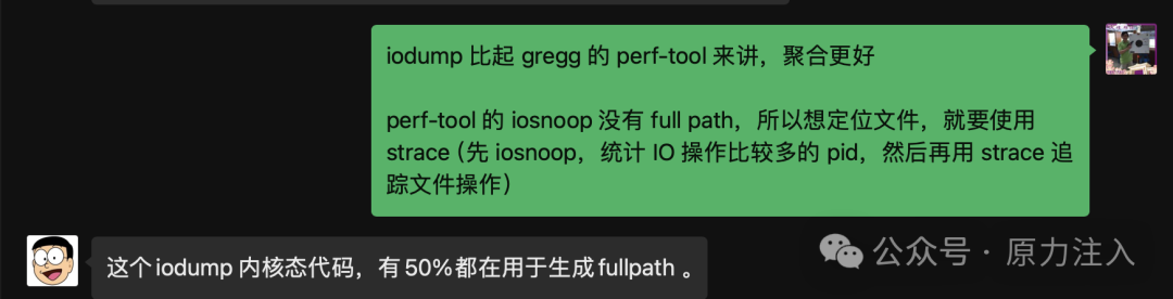 iops dump 工具(简称 iodump)是利用内核 tracepoint 静态探针点技术实现的一个 IO 问题排查工具。通过 iops dump 工具,我们可以获取每一个 IOPS(w/s和r/s)的详细信息,不仅包括 IO 请求的 size 大小,还包括 IO 请求的扇区地址,同时还包含 IO 请求的发生时间、读写的文件全路径、产生 IO 请求的进程、产生 IO 请求的系统调用和扩展 IO 类型等信息。这其中最具有特色的就是读写的文件全路径功能。