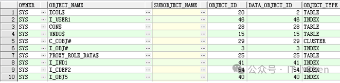 create table tt1 as select * from dba_objects;create table tt2 as select * from tt1;select * from dba_objects where object_name='TT1'; ---OBJECT_ID 87295 ---DATA_OBJECT_ID 87295---object_id: Dictionary object number of the object.---Data_object_id: Dictionary object number of the segment that contains the object.