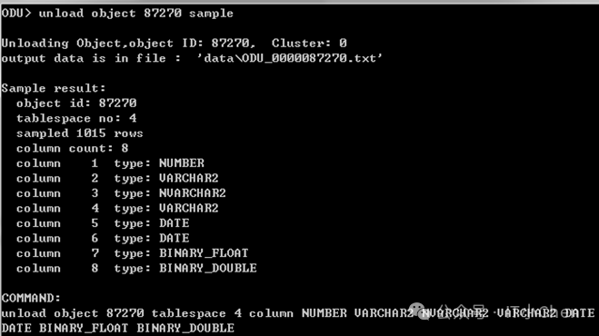 ODU_0000087270.ctl 和 ODU_0000087270.sqlCREATE TABLE "ODU_0000087270"("C0001" NUMBER ,"C0002" VARCHAR2(4000) ,"C0003" NVARCHAR2(2000) ,"C0004" VARCHAR2(4000) ,"C0005" DATE ,"C0006" DATE ,"C0007" BINARY_FLOAT ,"C0008" BINARY_DOUBLE);