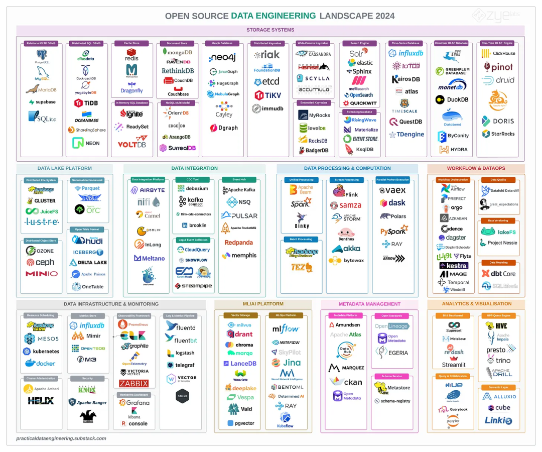 - 除了机器学习平台和基础设施工具,数据科学、机器学习和人工智能工具被排除在外,因为我只关注与数据工程学科相关的内容。