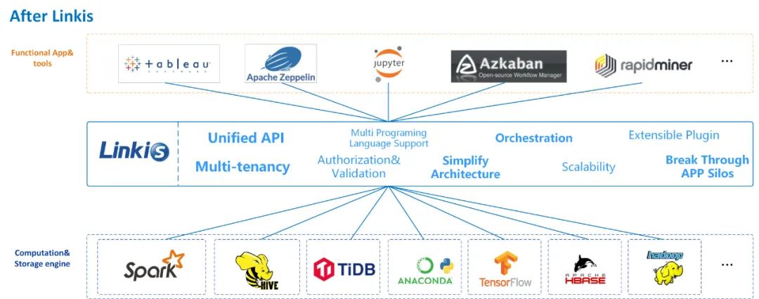 对于分布式和大规模并行处理(MPP)引擎,一些专家认为大数据已经过时,大多数公司不需要大规模的分布式处理,而是选择单个强大的服务器来处理其数据量。尽管有这种说法,但分布式大规模并行处理(MPP)引擎,如Apache Hive、Impala、Presto和Trino,在大型数据平台中仍然非常普遍,特别是对于拥有PB级数据的情况。除了传统的MPP引擎之外,统一执行引擎是另一个获得关注的趋势。诸如Apache Linkis、Alluxio和Cube之类的引擎为上层应用程序和底层引擎之间提供了查询和计算中间件。