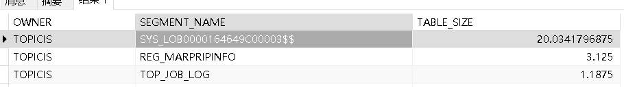 order by ROUND(SUM(A.BYTES / 1024 / 1024 / 1024), 2) ;上述查询语句将返回包含LOB字段的表名和对应的LOB字段名。通过这个查询结果,我们可以确认数据库中存在哪些LOB数据。