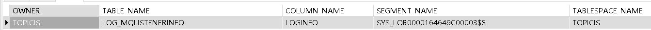 可以发现是LOG_MQLISTENERINFO这个表里存在的Bolb类型LOGINFO存有大数据,占用了20.03GB的空间。