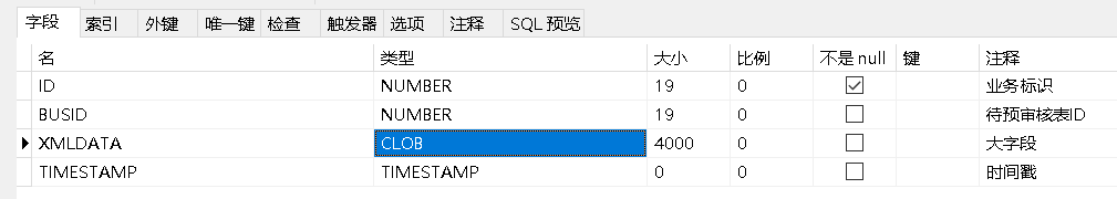 创建表(使用sql或者直接在PL/SQL客户端创建),字段类型CLOB