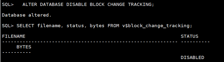 SQL> ALTER DATABASE DISABLE BLOCK CHANGE TRACKING;