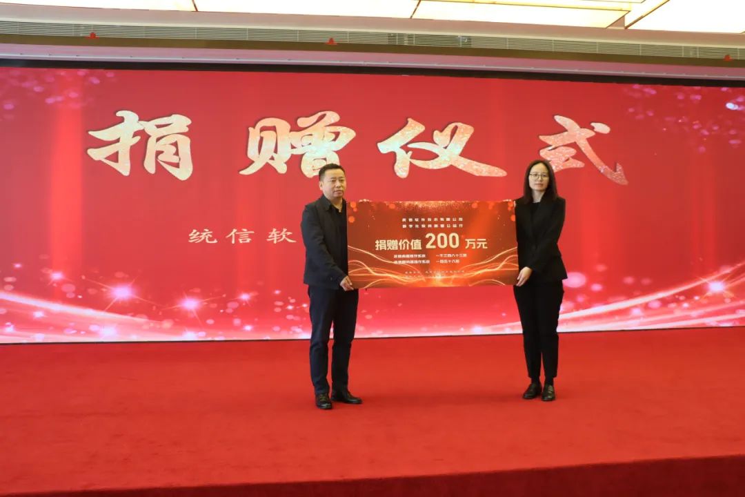 而助力教育公平,促进教育高质均衡发展,统信软件还在持续加码。培训会上,统信软件向自治区教育系统捐赠总价值200万元的操作系统产品,为自治区教育正版化建设贡献力量。