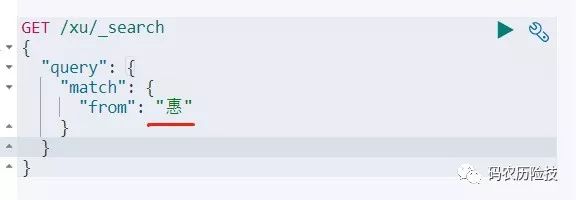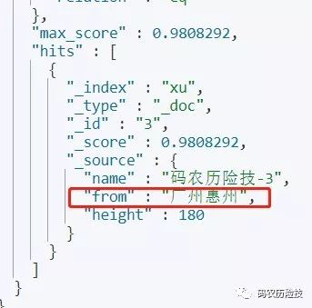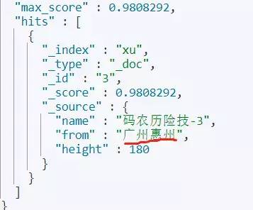 当然这种查询同时也是模糊匹配查询,我们查找"from"字段来自"惠州"的文档数据: