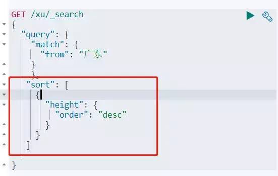 ElasticSearch排序用"sort"字段来实现,比如按照身高"height"从高到低排序: