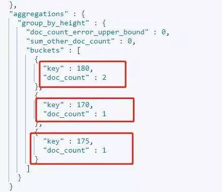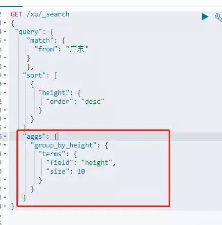 聚合查询一般用来统计数据的,以"aggs"字段实现聚合查询,比如说我要查询各个身高段的人有多少个: