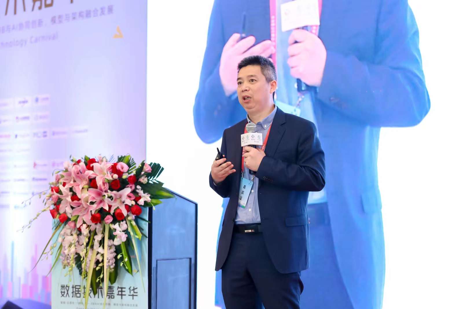 华东师范大学“智能+”研究院院长,CCF会士、数据库专委会主任周傲英代表中国计算机学会数据库专委会参加第十三届数据技术嘉年华,并对大会表示祝贺。周傲英教授解读了数据库的历史与未来发展,他指出数据与人工智能的合作已久,现在更侧重于基于数据的人工智能,即“Data is power”,数据库在其中扮演着赋能的核心角色。 在致辞的最后,周傲英表示中国数据库的发展应创新自己的概念、理论和技术体系,转型升级,应对新的挑战,创造自己的辉煌。