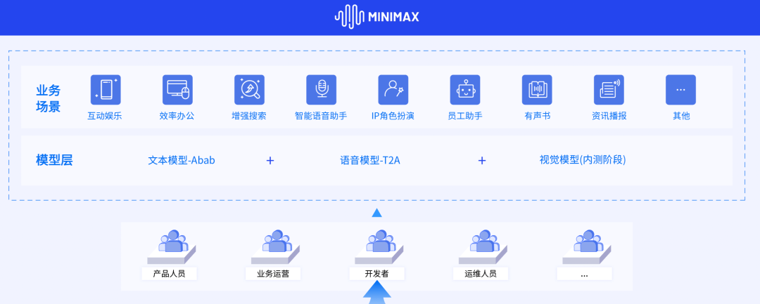 MiniMax 是国内领先的拥有文本、语音、视觉,三模态融合的千亿参数语言大模型公司。自2023年4月发布开放平台以来,MiniMax已服务近千家客户,包括金山办公、火山引擎、小红书、腾讯、小米和阅文等多家互联网公司。MiniMax开放平台平均单日token处理量达数百亿。