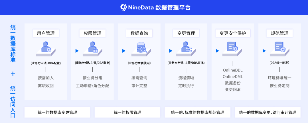 业务快速迭代,人员新增频繁,数据库规范依赖 DBA 人肉宣传无法支撑业务的高速发展 数据库变更频繁,规范依赖 DBA 兜底检查存在大量沟通甚至返工修改的成本,降低了研发效能 数据库账密直连多操作入口,人员账号管理难度大,数据库风险操作无法识别与拦截
