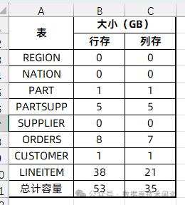 所以,统计总体的 TPC-H 的容量大小 SQL 有两个方法。当导入结束后两次合并后,这两个方法结果基本一致。