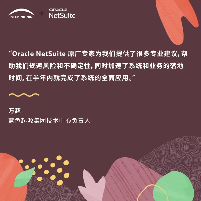在加速项目落地方面,“Oracle NetSuite 也为我们业务的落地提供了很多支持,他们的海外财税专家有深厚的专业知识,省去了找当地人调研的时间和不确定性。”蓝色起源技术中心负责人万超补充道。