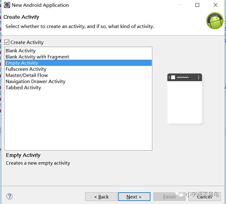 点击next,一直点到最后一步,新建一个Empty Activity。