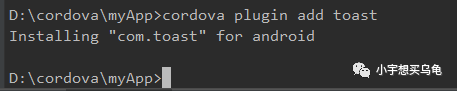 进入控制台,执行命令cordova plugin add toast。注意:执行的目录必须要是在一个cordova项目的目录下,且当前目录下有toast插件。这样才能添加成功