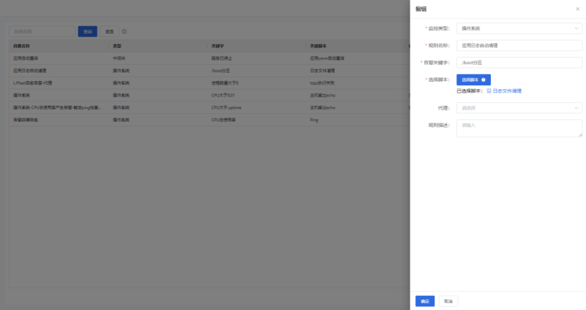例如,当监测到系统磁盘空间不足时,平台触发空间不足告警,自动激活相应脚本清除日志文件,释放磁盘空间;审计要求Linux用户每3个月改密,平台触发密码到期通知,可通过改密脚本自动修改密码。