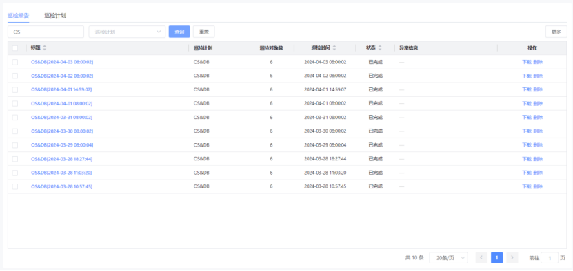 巡检报表还支持人工巡检和系统自动巡检两种方式,可自定义配置巡检任务、巡检的指标内容、巡检周期等。