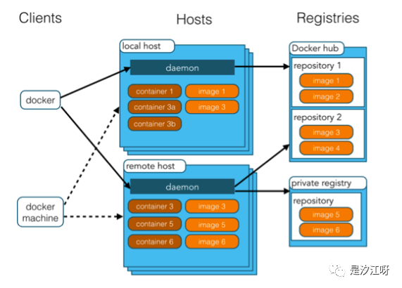 • 镜像(Image):Docker 镜像(Image),就相当于是一个 root 文件系统。比如官方镜像 ubuntu:16.04就包含了完整的一套 Ubuntu16.04 最小系统的 root 文件系统。• 容器(Container):镜像(Image)和容器(Container)的关系,就像是面向对象程序设计中的类和对象一样,镜像是静态的定义,容器是镜像运行时的实体。容器可以被创建、启动、停止、删除、暂停等。• 仓库(Repository):仓库可看成一个代码控制中心,用来保存镜像。