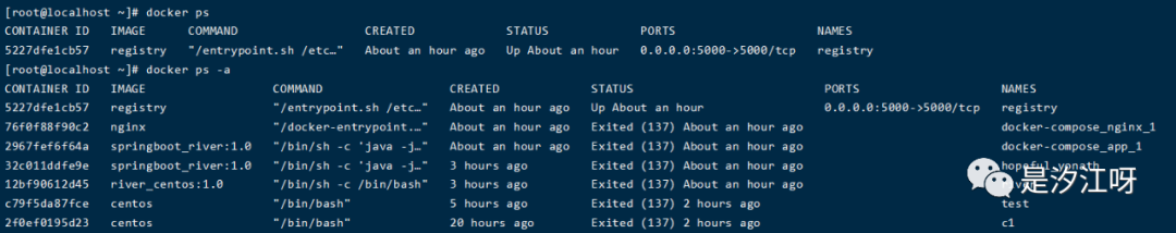 docker ps # 查看正在运行的容器docker ps –a # 查看所有容器,包括正在运行和停止的容器