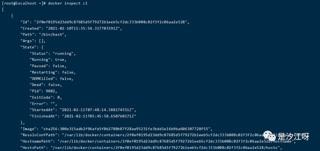 • docker inspect 容器名称或者容器iddocker inspect c1• 从容器的详细信息中可以说明,宿主可以与容器进行通信,但外部计算机无法和容器直接通信,需要设置宿主机器端口代理