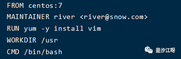 | MAINTAINER | 作者信息 | 用来标明这个dockerfile谁写的 |