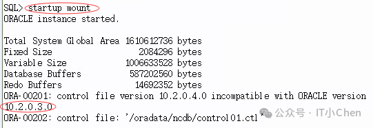 参数文件记录的数据库版本和控制文件记录的数据库版本不一致,原库版本是10.2.0.3.0,但是拷贝过来的数据库软件属于10.2.0.4.0;