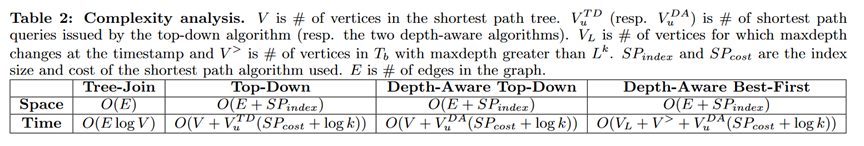 现代导航系统不仅提供最短路径,还提供一些备选路径,为用户提供更多选择。该文首次研究了为沿给定路径旅行的用户连续报告备选路径的问题。具体来说,给定用户正在路径P上行进,向用户连续报告从用户当前位置到目标的k条路径。该文提出了几种算法,每种算法都基于重要的观察和新颖的优化对先前的算法进行了改进。当用户移动时,所提出的算法保持并利用先前计算的信息来有效地更新k条备选路径。该文为每个提出的算法提供了空间和时间复杂度分析,如下图所示。