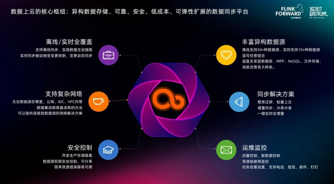 阿里云 DataWorks 数据集成是数据上云的核心枢纽(异构数据存储、可靠、安全、低成本、可弹性扩展的数据同步平台),支持几十种丰富的异构数据源,并且支持这些异构数据源之间任意组合,包含关系型数据库、MMP、NoSQL、文件储存、消息流等各大类型系统。同时,也支持复杂的网络全联通,无论用户的数据源在公网、IDC 机房、VPC 内还是跨云等场景,数据集成都具备成熟可以提供连接到各数据源的网络解决方案,支持用户进行数据迁移。同时针对云上各种丰富的数据集成场景,支持包括整库迁移、周期性离线同步、全增量同步等多种同步能力。同时背靠 DataWorks,数据集成具备成熟的安全控制机制,以及完善的运维报警监控能力。