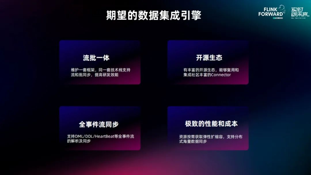 上述介绍了在基于 Flink CDC 引擎重构之前的技术架构,同时随着技术的迭代演进,我们期望的数据引擎应该具备四大特性: