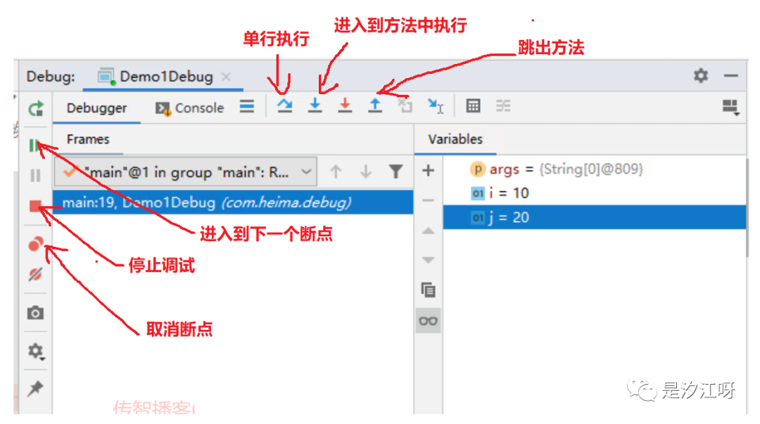 2.Debug执行:代码执行到断点位置会停下来,等待下一步操作